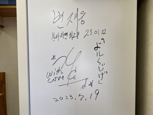 芸能人が訪れるお店というと敷居が高いイメージを持つ方もいると思いますが、肉焼き文太は観光客の方々も気軽に立ち寄れる雰囲気があります。