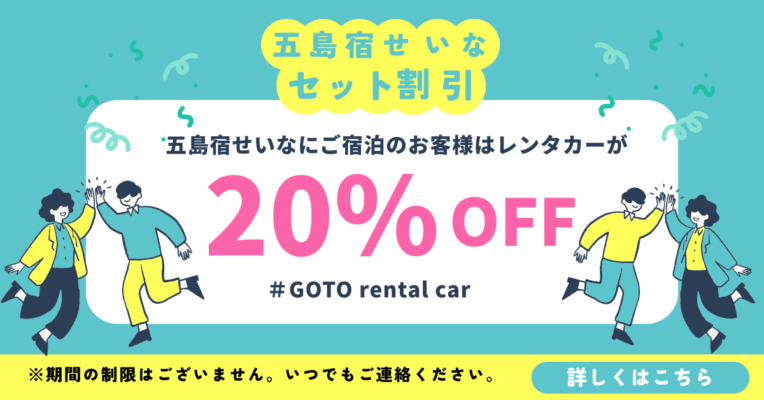 五島宿せいなに宿泊されるお客様限定で、基本料金が20%割引になります!